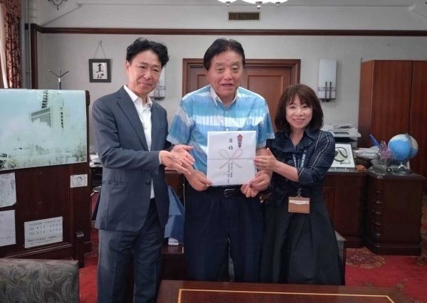 河村たかし名古屋市長を表敬訪問させて頂き、弊社職員と共に目録をお渡し致しました。